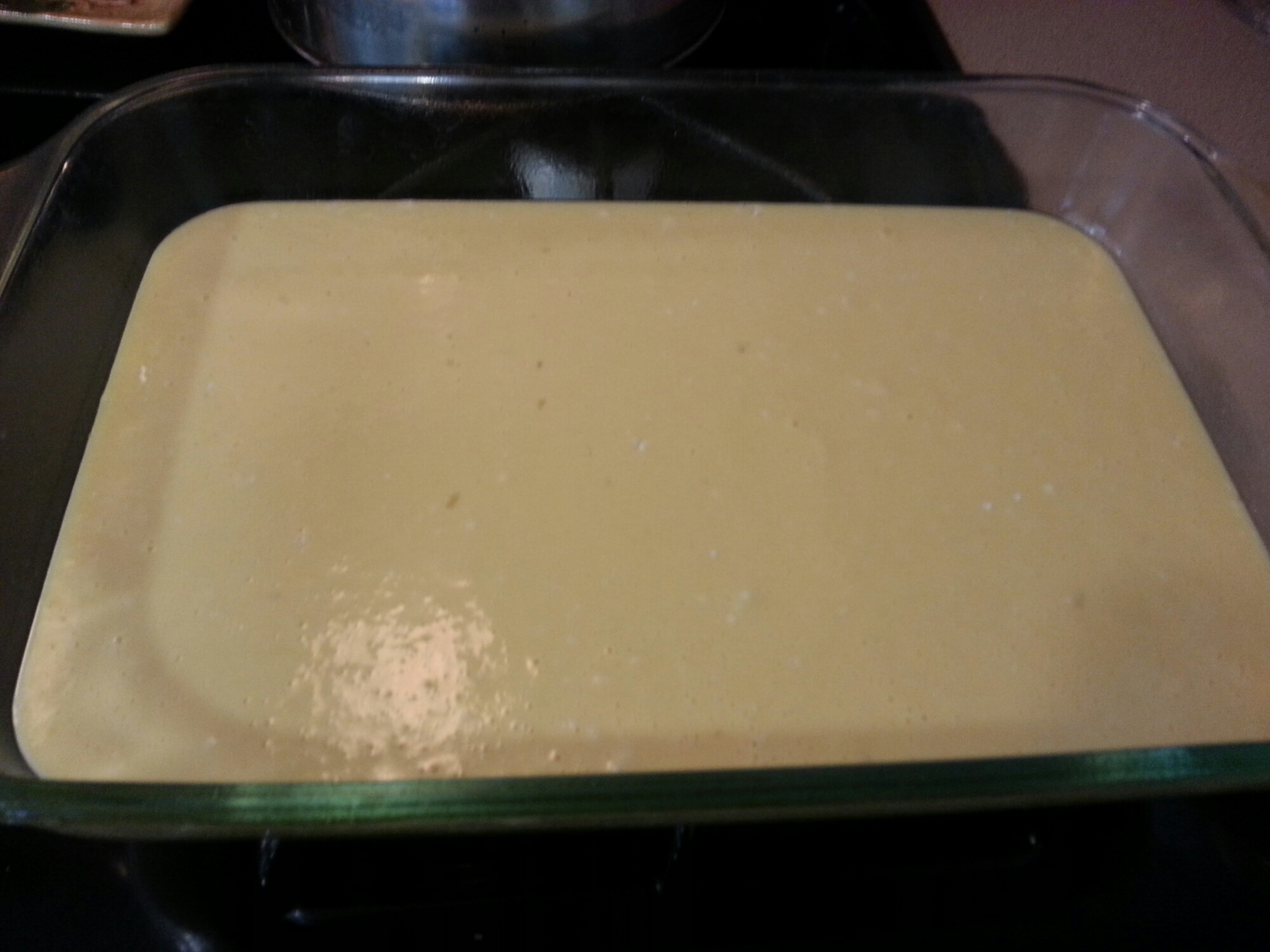 Mix thoroughly. Pour into your greased 9×13 baking dish.