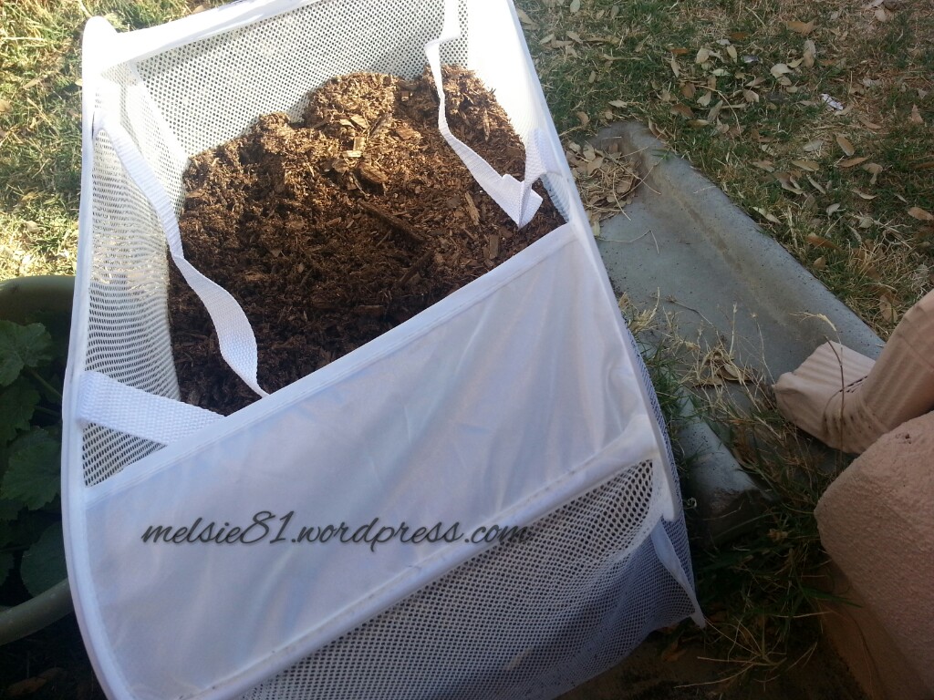 Buried potatoes in a cheap mesh bag. Bag was $5 by the way.  Then all of a sudden they started growing!