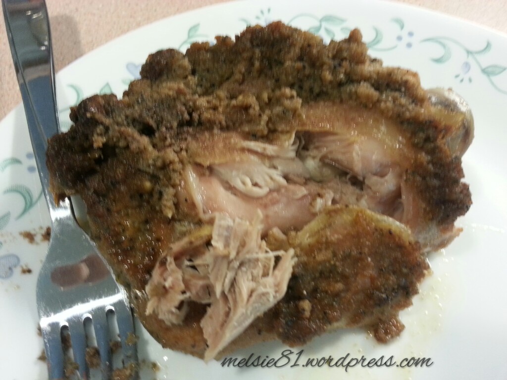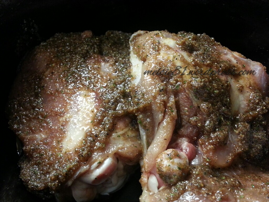 Are you ready for the final cooking product? It falls off the bone and tastes sooooo good! I’m going to have mine with some dressing and green beans. Sounds good doesn’t it?