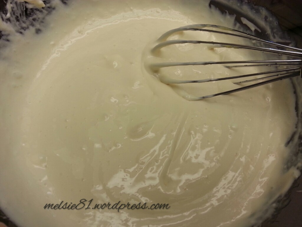 3. Next, in another bowl, mix together the condensed milk and cream cheese. Make sure the lumps are smoothed out.