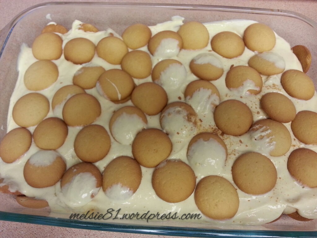 6. Pour this mixture on top of your wafers and bananas. Place the rest of the vanilla wafers on top and place in the fridge until you are ready to devour it with happiness.